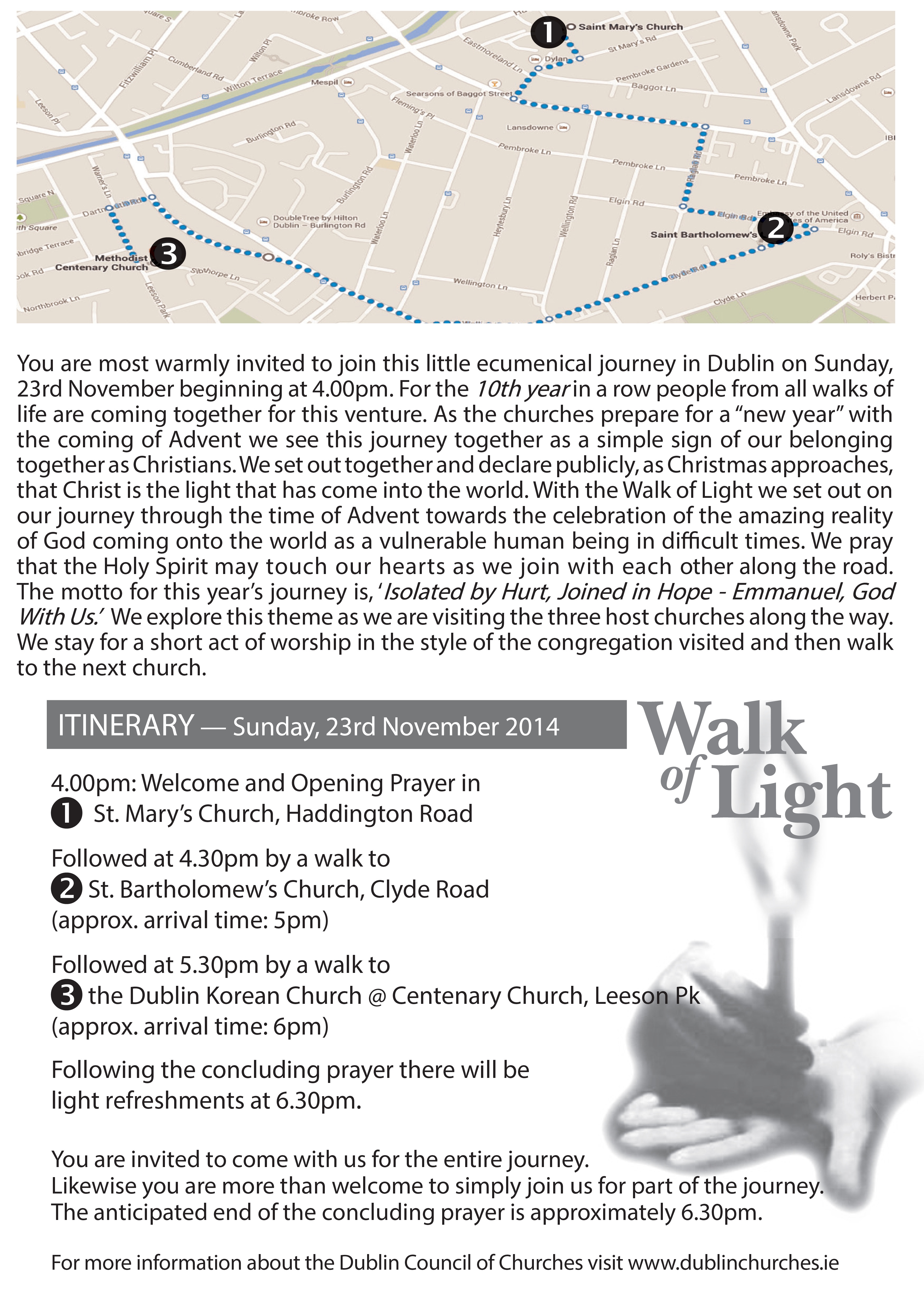 Meet at 4pm at St.Mary’s Church, Haddington Road